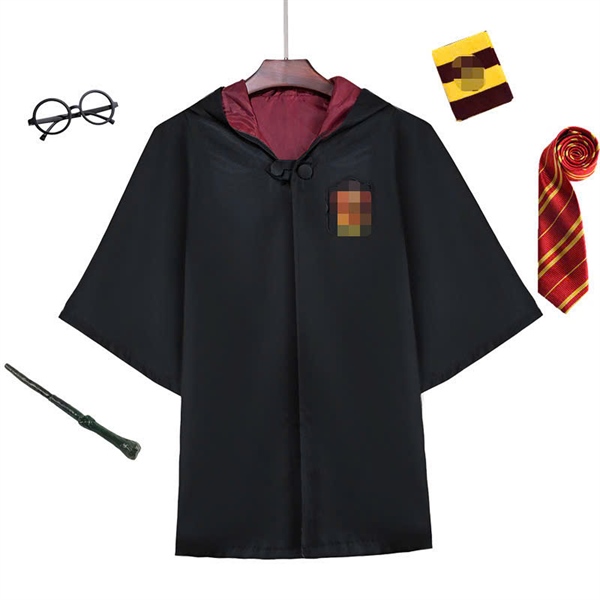 Bao gồm: áo choàng có mũ, gọng kính, khăn quàng cổ, cà vạt, đũa phép thuật.