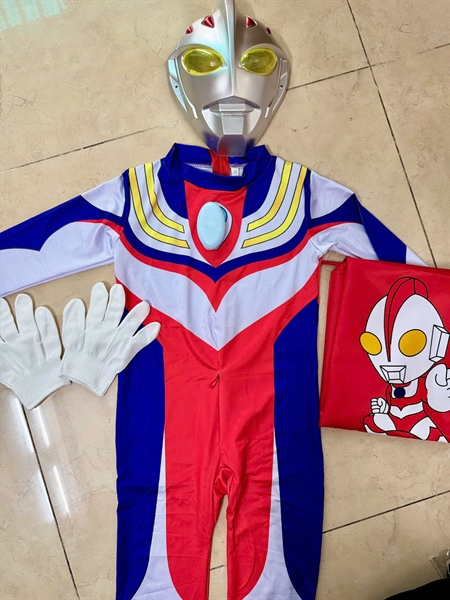 Set bao gồm: áo liền quần, áo choàng, mặt nạ, đèn ngực, găng tay.