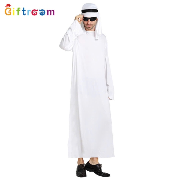 Bao gồm: áo suông dài, mũ, ria mép, dây chuyền vàng.